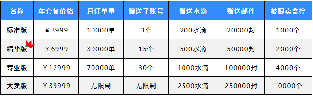 基础功能永久免费,付费年套餐版根据月订单量的不同而不同。